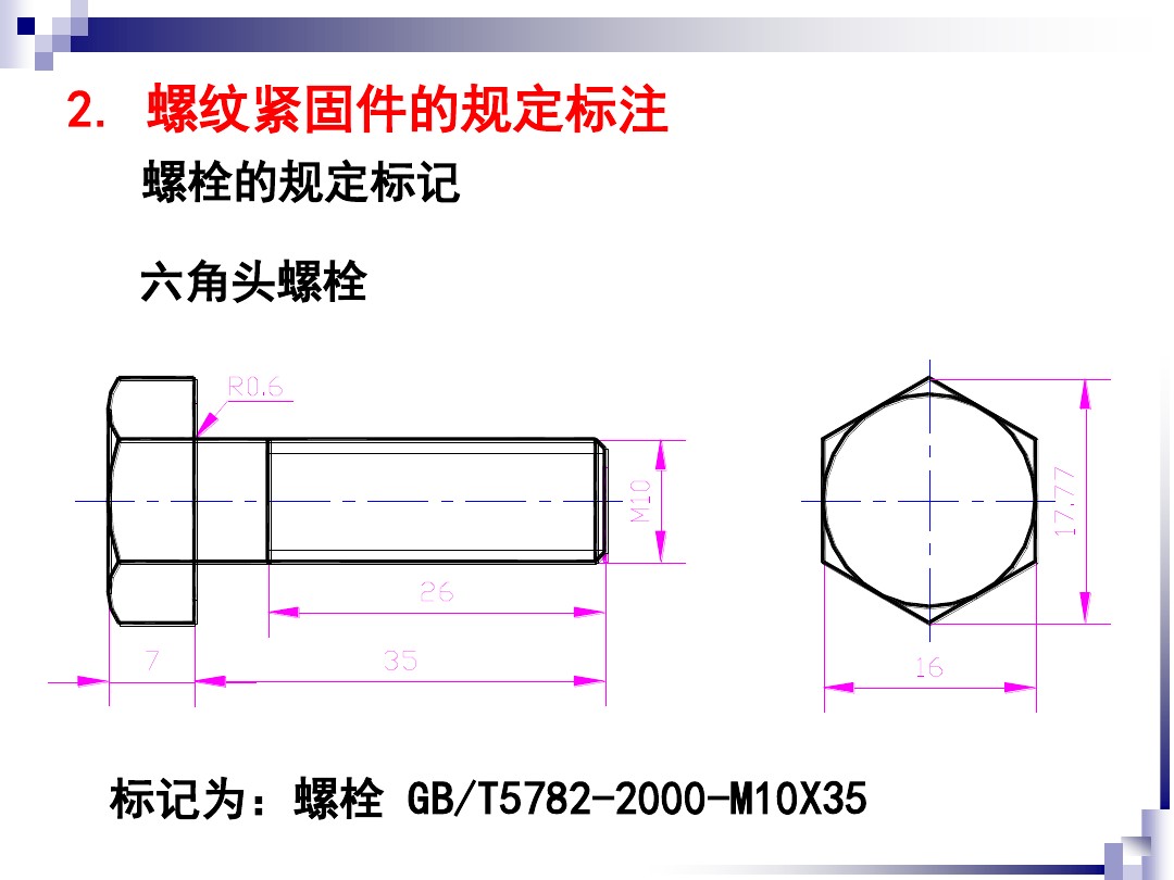 也可选不锈钢316双头螺栓择,地脚螺丝规格尺寸表变化段26是螺纹部分14的端部段。在这种情况下,螺纹部分14没有具有恒定顶角α的段和/或没有具有第二恒定顶角α2的第二段。双头螺柱在一个特殊实施例中,螺纹部分14对应于图1中的螺纹部分,但是没有第二段。螺纹部分14包括具有恒定顶角的段24和具有从顶角α至第二顶角α2连续和地逐渐变化的顶角的变化段26,该第二顶角α2严格小于顶角,该变化段26结束螺纹部分14。在没有第二段的螺纹部分的一个示例实施国标316外六角螺丝生产厂家例中,第二长度L2为零,变化段LT例如比长度LI更长或者相等。在一个特殊实施例中,螺纹部分14只包括变化段,在变化段上螺纹的顶角从顶角α至第二顶角α2连续和地逐渐变化,该第二顶角α2严格小于顶角α。国标外六角螺栓规格,