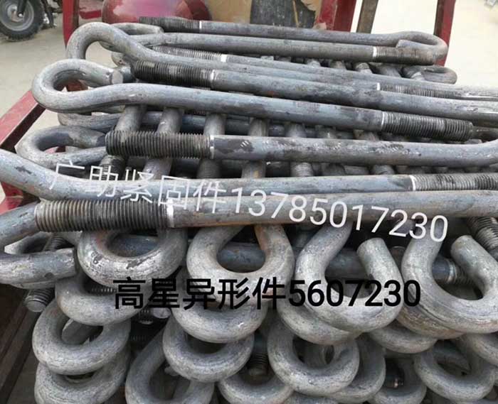 地脚螺栓一般规格:螺纹规格x螺距x地脚螺栓度:M20X2.5X4002.螺纹规格x地脚螺栓长度:M20X400二、地脚螺栓平常标准;地脚螺栓埋入基础内一般用两种方法,即预埋和预留孔二次灌浆埋入法;邯郸市广助紧固件制造有限公司拥有多年紧固件制造经验,温室大棚专用u型螺栓。造就了一批从事热镀锌螺栓设计制造的工程技术人员和经验丰富的一线技术人员。