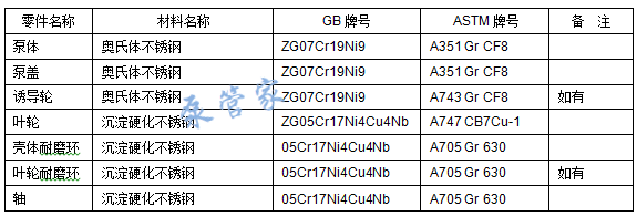 不同的泵制造商根据各自的使用经验及综合各种因素,在材料选用上存在较大差异:
