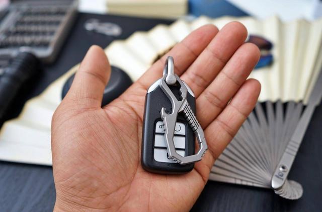 后来索性又配了一个马蹄扣,这样的话FEGVE多功能钛合金一体钥匙扣就可以完美挂车钥匙了,双头螺柱规格个人感觉是很MAN的设计,但没有那些傻大粗钥匙扣的笨重感。高强度外六角螺栓,