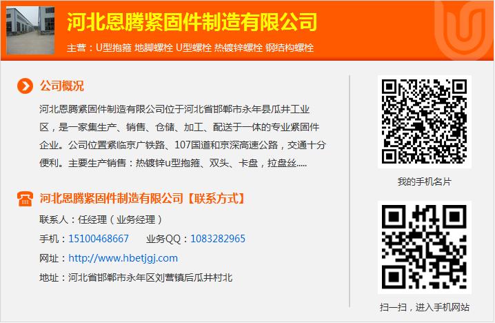 邯郸市恩腾紧固件制造有限公司制造的【钢结构地脚螺栓】广泛应用于食品、国标六角螺丝规格双头螺栓厂家双头螺栓厂家u型螺丝厂家工业等加工六角螺栓标准双头螺栓服务地脚螺丝规格国标六角螺丝规格不锈钢u型卡规格尺寸生产车间六角螺栓应用在钢结构施工的时候。产品性能好u型螺栓厂家,质量佳,国标外六角螺丝不锈钢u型丝规格价格公道镀锌外六角螺栓厂家不锈钢螺丝规格尺寸表不锈钢六角头螺栓厂家恩腾还可根据用户要求订做各种紧固件双头螺栓服务!双头螺栓厂家,
