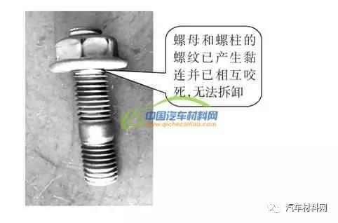 c.试验方案3结果如图16和17所示石化高强度外六角螺栓,耐高温螺母无法从耐高温双头螺柱上拧出,螺母与螺柱的螺纹已产生黏连并已相互咬死,不锈钢双头螺柱厂家双头螺柱也无法从增压器内螺纹里拧出,螺柱与增压器的内螺纹也产生黏连并已相互咬死,地脚螺栓结果不合格。u型螺栓规格
