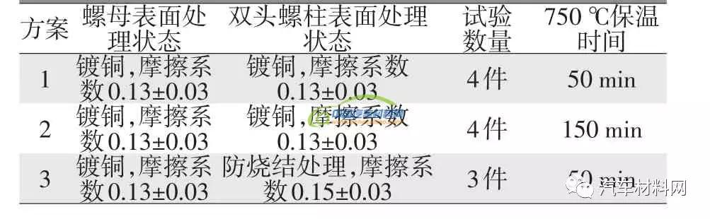 试验方案按照表3的3种方案进行,以验证不同表面处理和摩擦系数下耐高温双头螺柱及螺母的拆卸性能。304外六角螺丝地脚螺栓重量