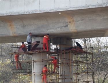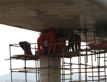 以佛开高速公路独柱墩连续箱梁桥横向抗倾覆加固项目为例,该项目项目于2017年1月施工完毕,主要 内容有:佛开高速公路沿线的汾江大桥、南庄互通立交 匝道桥、吉利互通立交匝道桥、陈山互通立交匝道桥等 独柱个墩桥梁增设钢盖梁13个,抗拔销26个。